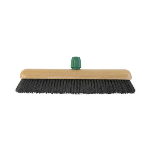 Deze indoor zaalveger heeft een breedte van 50 cm en een dubbelvaste steelaansluiting. In de houten bezem kun je een houten steel plaatsen of een (telescoop)steel met Duits schroefdraad.