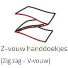 Dit zijn de meest gebruikte handdoekjes. De handdoekjes trek je door deze manier van vouwen één voor één uit de dispenser waardoor je bespaart in het verbruik en enkel het handdoekje aanraakt wat je zelf gebruikt.