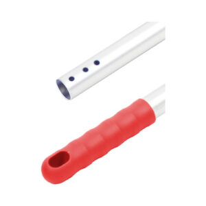 De steel is gemaakt van hoogwaardig aluminium en heeft een universele steelaansluiting. De uiteinde van de steel is namelijk voorzien van één boorgat waardoor de steel multifunctioneel inzetbaar is. Door deze aansluiting past de steel in alle vlakmophouders, strengenmopklemmen en in de zwabber- en stofwisframes. De borgpin van die houders en frames schuif je gemakkelijk in het gat van de steel zodat deze stevig vastzit.