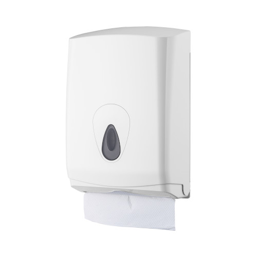 Met deze midi handdoekdispenser van PlastiQline help jij je gasten met het drogen van de handen met papier.