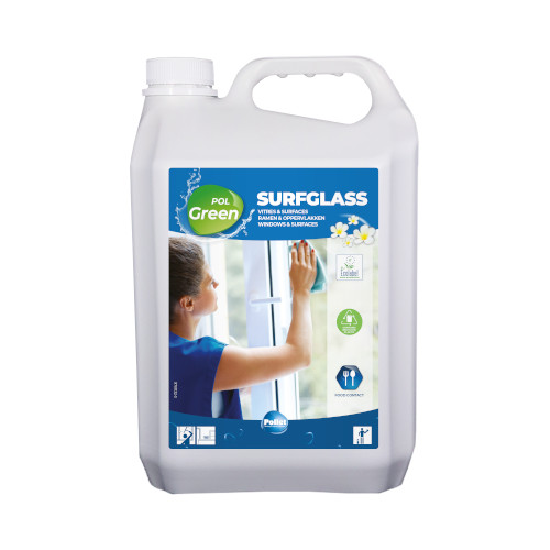 PolGreen Surfglass is een reiniger op alcoholbasis die ervoor zorgt dat de oppervlakken snel drogen. Perfect voor alle afwasbare oppervlakken in uw interieur en goedgekeurd voor gebruik in de buurt van voedsel.