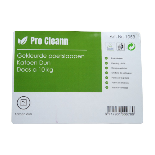 Deze Pro Cleann gekleurde poetslappen zijn gemaakt van de beste kwaliteit katoen. Met de aankoop van poetslappen van Pro Cleann weet je zeker dat je een doosinhoud van 10 kg ontvangt.