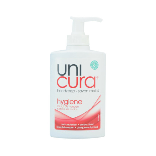 Unicura handzeep is een antbacteriele handzeep geschikt voor dagelijks gebruik. De klinisch bewezen hygiëne formule reinigt de handen diep. De Unicura handzeep beschermt je handen effectief tegen bacterien waar je mee in aanraking komt tijdens je dagelijkse bezigheden. De handzeep geeft een frisse en aangename geur af.